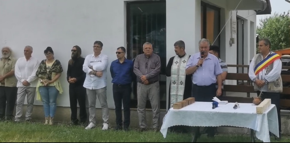 După o scurtă slujbă religioasă săvârșită de preotul comunei, domnul primar Gheorghe Epure a prezentat invitații și meșterii populari care timp de 10 zile vor sculpta și crea alte personaje din Satul dacic.