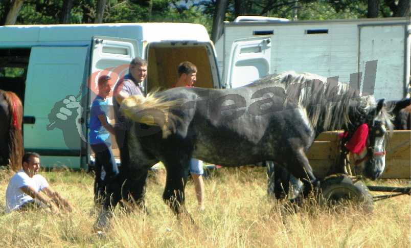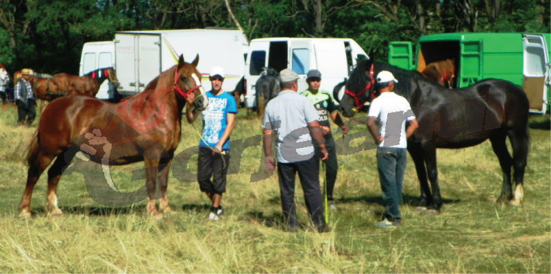 Cai de căruţă, de munte ori folosiţi pentru reproducere adevăraţi zdrahoni ai speciei cabaline de culori care mai de care pornind de la negrul lucios ce aminteşte probabil de cunoscuţii pur sânge arabi şi terminând cu adevărate nuanţe pastelate aducând a „culoarea vântului turbat” cum spuneau unii încântă atât ochiul privitorilor şi pe cel venit să cumpere unul ori mai multe exemplare. Poate de aceea privind câteva demonstraţii de îndemânare şi putere ale acestora desfăşurate în compania stăpânilor lor mi-am adus aminte de faptul că în mitologie exista centaurul (un animal jumătate om, jumătate cal cu rol important în cuprinsul istorisirilor de pe Olimp) cel mai probabil născut în imaginaţia unora ca formă supremă a simbiozei dintre om şi cal.