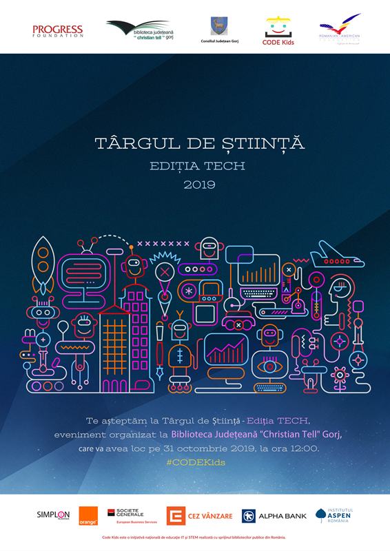 Joi, 31 octombrie 2019, începând cu ora 12:00, la Biblioteca Judeţeană „Christian Tell” Gorj va avea loc cea de-a treia ediţie a Târgului de Ştiinţă – ediția Tech, eveniment la care sunt aşteptaţi să participe copiii şi bibliotecarii din întregul județ.
