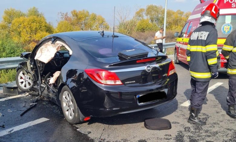 În urma impactului, conducatorul auto al autoturismului a rămas încarcerat, iar colegii nostri intervin pentru extragerea din autovehicul.