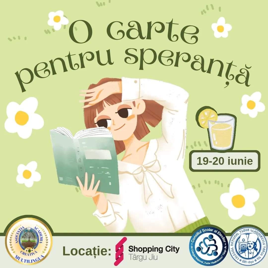 Asociația Academia Creativă „Multilingua”, în parteneriat cu Colegiul Național „Tudor Vladimirescu” Târgu Jiu și Consiliul Școlar al Elevilor din cadrul CNTV, organizează o nouă ediție a activității „O carte pentru speranță”, care va avea loc în incinta mall-ului din Târgu Jiu.