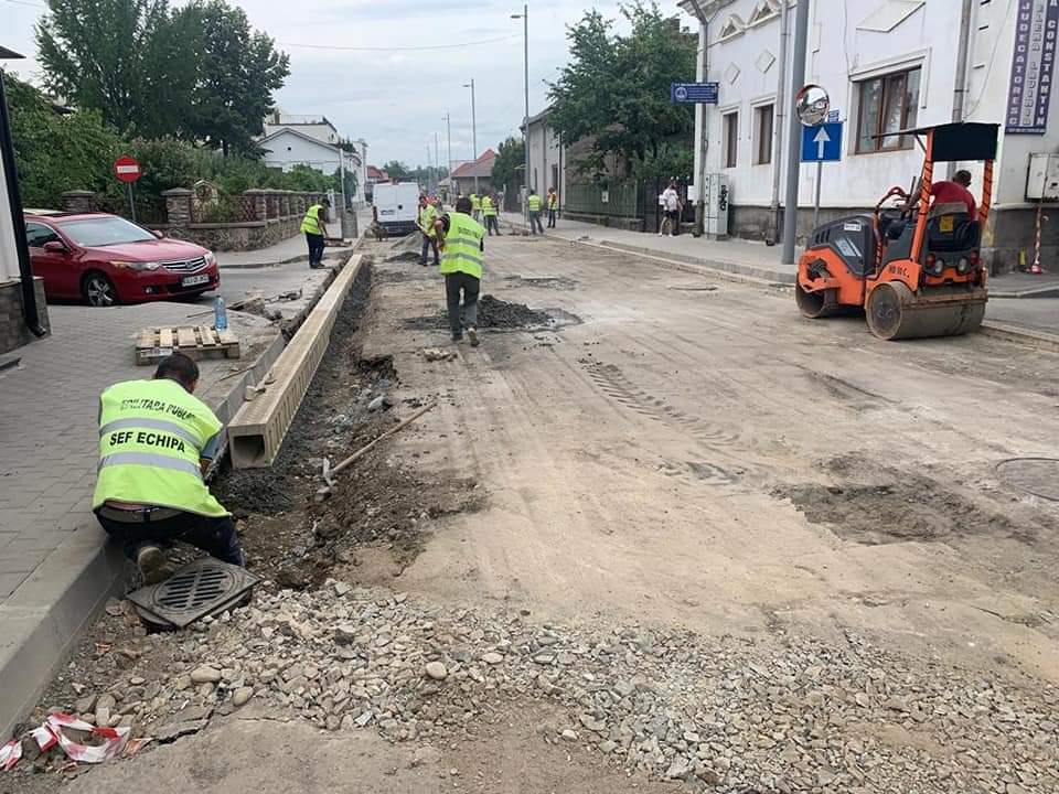 Se toarnă primul strat de asfalt pe strada Tudor Vladimirescu. „Avem aici o investiție amplă ce a cuprins modernizarea canalizării, refacerea trotuarelor și turnarea unui nou covor asfaltic.
