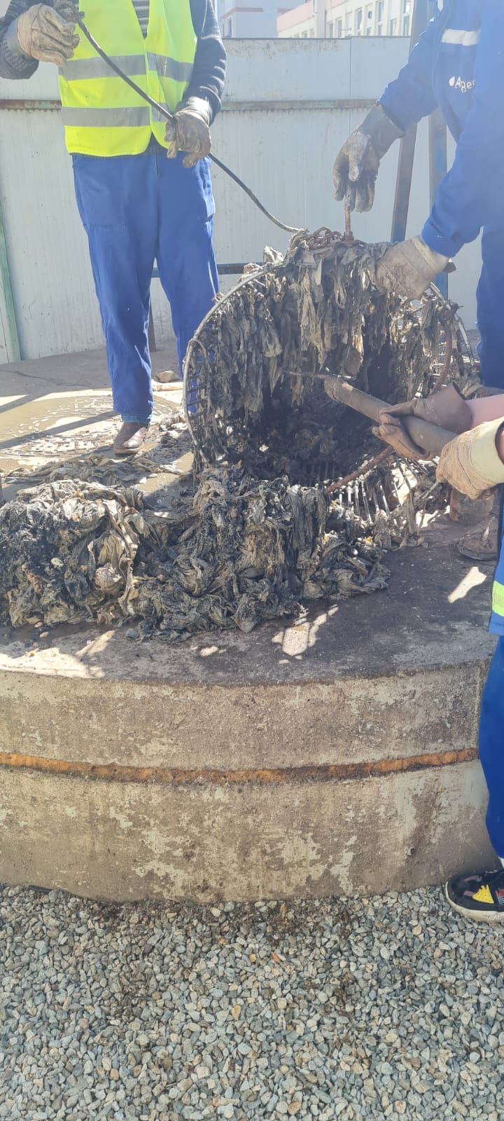 Echipele operatorului au intervenit luni, 6 aprilie, pentru curățarea coșului Stației de Pompare Ape Uzate de pe strada Agriculturii, unde au descoperit cantități alarmante de materiale textile, șervețele umede și alte deșeuri care nu ar trebui să ajungă în canalizare.