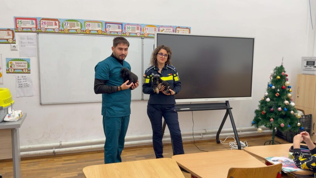 ”Astăzi am fost alături de reprezentanții Biroului pentru Protecția Animalelor din cadrul IPJ Gorj la Colegiul Național Spiru Haret. Am discutat cu elevii din clasa pregătitoare despre respectul și grija față de animale. Chiar dacă sunt la început de drum, majoritatea au înțeles ce înseamnă iubirea față de animale și responsabilitatea față de ele.