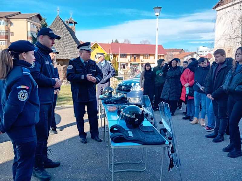 În fața, dar și în amfiteatrul instituției de învățământ, aceștia au prezentat elevilor și profesorilor recomandări privind prevenirea fenomenului de bullying și cyberbullying, a consumului de substanțe psihoactive și aspecte privind traficul de persoane. A fost difuzat și un film realizat de tineri privind violența în rândul elevilor și au fost explicate consecințele suportate de toți cei implicați.