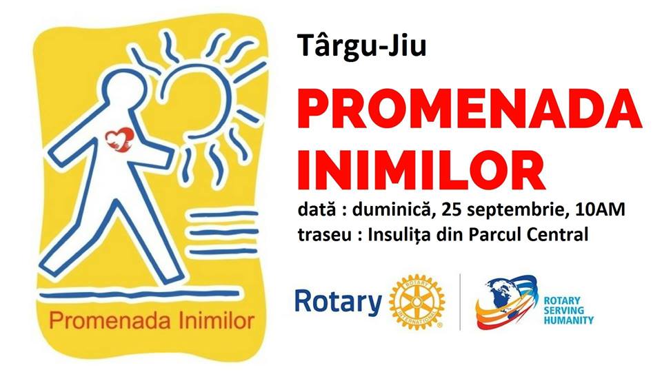 Clubul Rotary Târgu Jiu continuă și în 2016, programul „Promenada Inimilor”, proiect de amenajare a unui traseu accesibil, ce îşi propune să încurajeze populaţia oraşului să facă mişcare, ca mijloc de prevenţie a bolilor cardiovasculare, cu ocazia Zilei Mondiale a Inimii. “La fiecare 30 de minute, un român face infarct miocardic. Unul din trei români suferă de hipertensiune arterială. Şapte milioane de români suferă de una dintre manifestările generalizate ale bolilor cardiovasculare. Toate aceste boli pot fi prevenite, iar mişcarea zilnică este elementul central al optimizării modului nostru de viaţă. Noi ne-am pus inima la treabă. Tu ce faci?” spune Prof. Dr. Dan Gaiţă – membru în Consiliul de Conducere al European Heart Network.