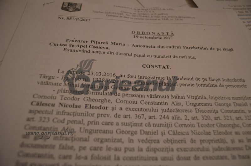 Dosarul 857/P/2017 a fost soluționat la Craiova pe 19 octombrie, procurorul de caz dispunând disjungerea cauzei și declinarea competenței în favoarea Parchetului de pe lângă Tribunalul Gorj în vederea urmăririi penale atât pentru Teodor Gheorghe Cornoiu, cât și pentru fratele său Constantin Alin Cornoiu, dar și pentru Ungureanu George Daniel și pentru experții judiciari Florin Felindean și Petre Romanos pentru înșelăciune, fals în înscrisuri oficiale, fals în înscrisuri sub semnătură privată, uz de fals și constituire de grup infracțional. În ce privește celălalt dosar, cu nr 687/P/2016 de la Parchetul de pe lângă Judecătoria Târgu-Jiu, acesta se află în lucru la procuror din 21 noiembrie 2017. Teodor Cornoiu se ambiționează și mai mult și deși este urmărit penal are grijă, luna aceasta, să le facă, la rându-i, un necaz locatarilor vilei din Meteor, asta chiar înainte de Crăciun. Cornoiu se adresează astfel distribuitorului de gaze, solicitând debranșarea locuinței din Meteor, pe motiv că această casă i-ar aparține. Distribuitorul somat în scris se supune solicitării lui Cornoiu, deși Găman și soția acestuia arată furnizorului de gaze că problema locuinței nu a fost în totalitate soluționată, ea aflându-se pe rolul instanțelor de judecată.
