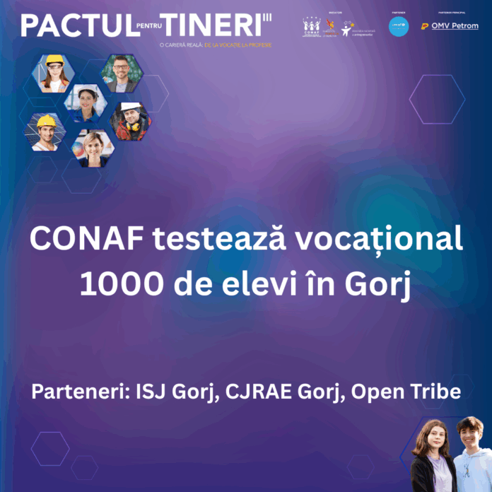 Confederația Națională pentru Antreprenoriat Feminin (CONAF), alături de UNICEF România, lansează în Gorj un program de testare vocațională pentru elevii de clasa a VII-a și a VIII-a.