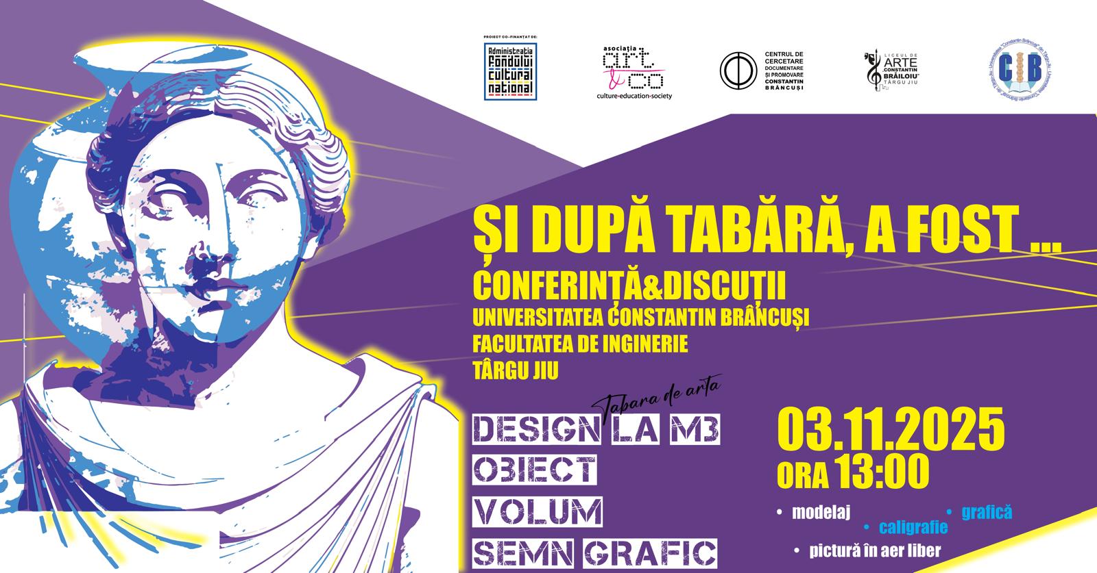 Tabăra de artă „DESIGN la M3 – Obiect, Volum, Semn Grafic”, desfășurată în luna august 2025, a reunit un grup de 11 elevi de la Liceul de Arte „Constantin Brăiloiu” din Târgu Jiu și doi studenți din Republica Moldova, într-un program educațional intensiv.