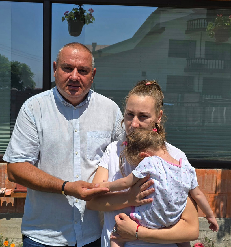 De asemenea, familia Constantin este una greu încercată mai ales că fetița cuplului a fost născută prematur, iar acum se luptă cu o serie de afecțiuni medicale, având nevoie de îngrijirea permanentă a părinților ei. ,,Sunt mama Raisei, o fetiță de doi anișori, născută prematur la șase luni, cu greutatea de 600 de grame. M-am luptat pentru ca acest copil să trăiască, oferindu-i dragostea maternă precum și toate condițiile necesare pentru a se recupera și dezvolta, astfel încât să ajungă un copil normal. Eforturile mele nu au avut rezultatele dorite. Astăzi, Raisa este lângă mine, dar cu grave afecțiuni medicale care necesită îngrijire permanentă. Grijile, supărările și nopțile nedormite la capătul Raisei și-au lăsat urme adânci asupra sănătății mele, astfel ca anul trecut, pe 21 mai, am fost diagnosticată de către medicii de la Spitalul Municipal din Cluj-Napoca cu o tumoare hepatică de 12 cm, cu evoluție galopantă, care necesita intervenție chirurgicală de urgență. Gravitatea diagnosticului a fost să mă adresez medicilor din Bucuresti unde am fost operată la data de 17 iulie 2024, când mi-au fost extirpate trei sferturi din ficat, întrucât tumoarea hepatică ajunsese deja la 19 cm. Bucuria unei stări de sănătate bună a fost de scurtă durată întrucât boala a recidivat. Astăzi am 4 noduli pe ficat, cu o evoluție rapidă și imprevizibilă. La consultul pe care l-am efectuat în data de 20 februarie 2025, s-a luat decizia de a mi se face transplant hepatic, fiind pusă pe lista de așteptare. Sunt o mamă care vrea să trăiască! Am numai 26 de ani! Vreau ca Raisa să aibă o mamă care să o crească! Pentru toate acestea, am nevoie de sprijinul dumneavoastră întrucât situația materială a familiei mele nu-mi permite să achit costurile integrale ale operației și ale tratamentelor de recuperare ce se impun ulterior! Sunt convinsă ca sunteți solidari cu mine și ca mă veți ajuta cum ați mai făcut-o! Dumnezeu să vă binecuvânteze! Vă doresc tuturor mămicilor multă sănătate să puteți să vă creșteți copiii!”, este strigătul de ajutor al Valentinei Constantin.