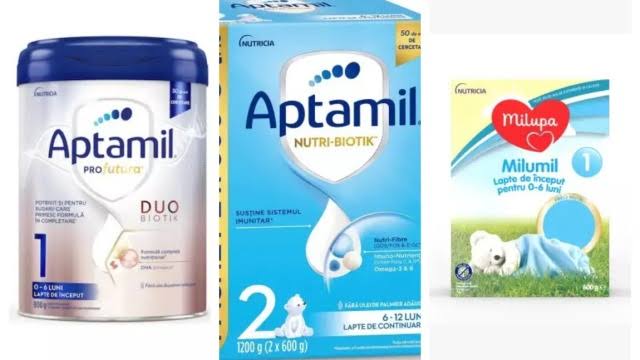 De asemenea, sunt incluse în retragere produsele Aptamil PROFUTURA DUOBIOTIK 1, de 800 de grame, cu termen de expirare 13.05.2027, Aptamil PROFUTURA DUOBIOTIK 2, de 800 de grame, cu expirări la 12.05.2027 și 16.07.2027, precum și Milupa Milumil 1, ambalaje de 600 de grame, cu date de expirare 08.08.2026, 09.10.2026, 30.12.2026 și 14.01.2027.