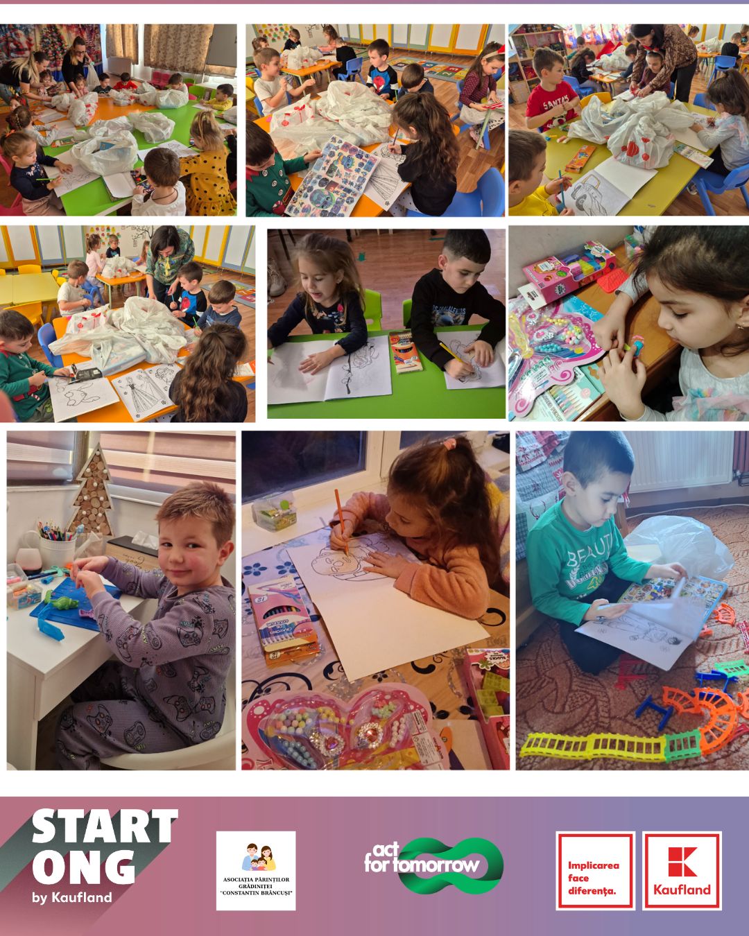 Preșcolarii de la Grădinița cu Program Prelungit „Constantin Brâncuși” din Târgu Jiu au participat, în luna decembrie, la o serie de ateliere creative prin care au descoperit tradițiile și obiceiurile de Crăciun prin artă, cântec și poezie. Activitățile au fost organizate în cadrul proiectului „Un Crăciun creativ”, implementat de Asociația Părinților Grădiniței „Constantin Brâncuși”, fiind finanțat prin programul Start ONG, lansat de Kaufland România și implementat de Asociația Act for Tomorrow.