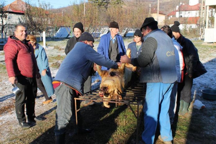 Tradiționala sacrificare a porcului de Crăciun, la Complexul de Îngrijire și Asistență Dobrița