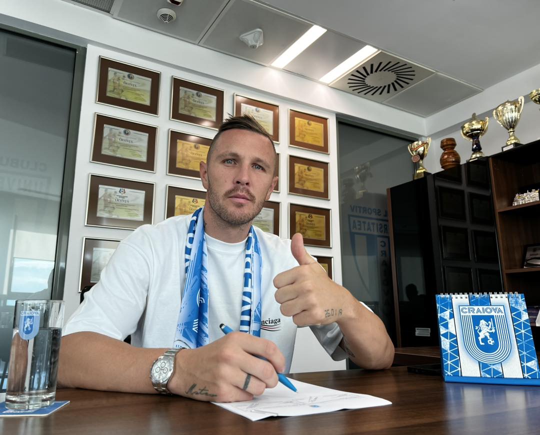 „Noul metronom de la mijlocul terenului deține o carte de vizită bogată: a evoluat la formații precum Parma, Sassuolo, Torino, Fiorentina, Atalanta, SPAL și Paok. Una dintre cele mai importante performanțe o reprezintă accederea în sferturile de finală UEFA Conference League în sezonul 2021-2022, pe vremea când evolua în tricoul grecilor”, susține Universitatea Craiova.