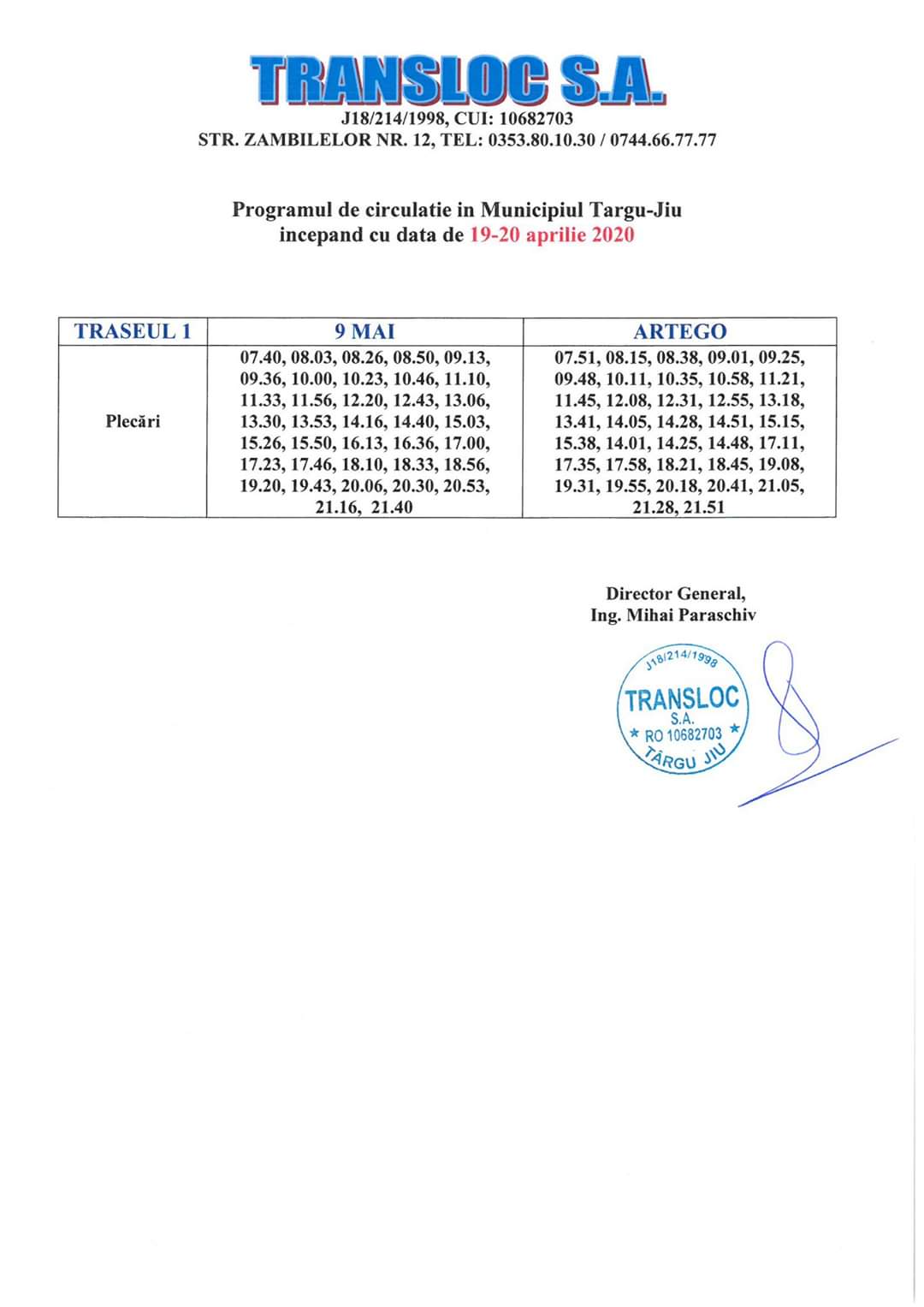 Transloc: Programul de circulație în zilele de Paște