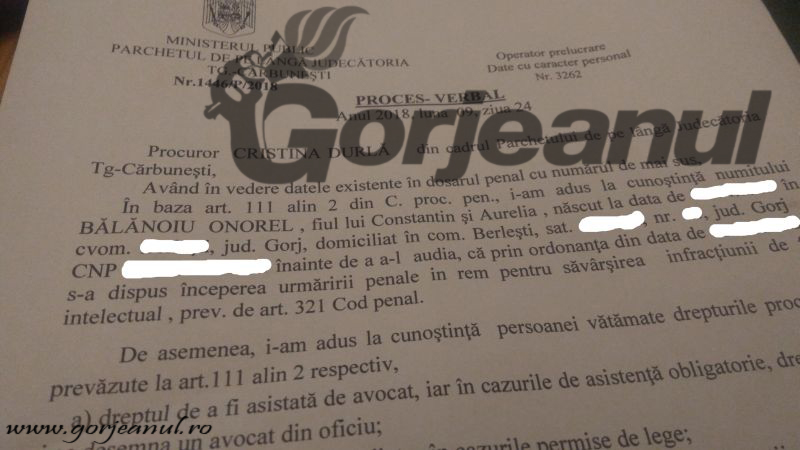 procurorul de caz a dispus urmărirea penală in rem pentru faptă, adică pentru fals intelectual”, a declarat cetățeanul, arătând comunicarea primită de la procurorul de caz, Cristina Durlă. Omul spune că pentru deplasarea în cauză s-ar fi întocmit acte, privind consumul de benzină pentru acea cursă, nu de către poliția din Bustuchin, ci pentru cea din Berlești, de aici și acuzația de fals intelectual. Acesta susține că ar fi încercat să discute cu șeful de post de la Berlești în urma precizărilor făcute de șeful de post din Bustuchin, legat de consumul de benzină, dar comunicarea a fost deficitară, motiv pentru care nemulțumitul a ajuns la Parchet. Cetățeanul reclamant a avut mai multe altercații cu polițiștii din comună, acesta fiind de părere că agenții nu-și fac datoria.