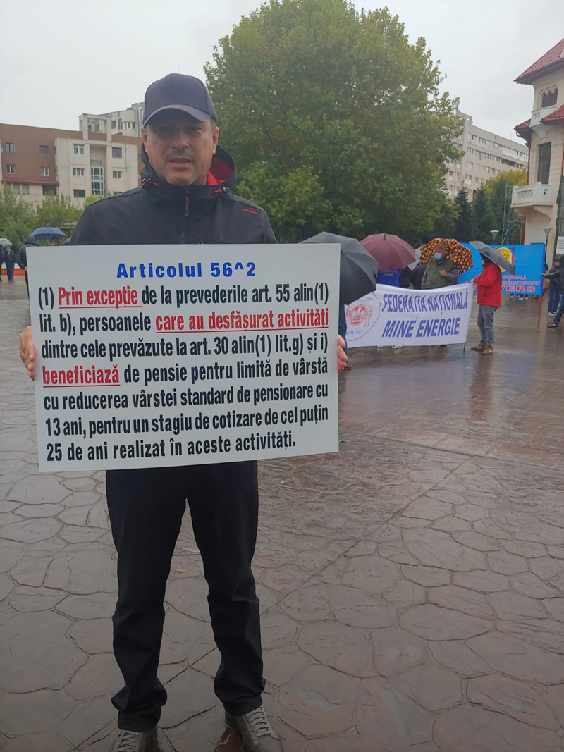 De aceea am vorbit cu câțiva colegi, lideri de sindicat, dar și membri ai Sindicatului Energia Rovinari, și am luat hotărârea că dacă până în data de 15 noiembrie 2021 nu vom reuși să deblocăm aplicarea și retroactivă a legii 197, atunci ne vom deplasa la București, unde vom declanșa un PROTEST EXTREM în fața Guvernului României! Până atunci au destul timp să își instaleze un nou guvern și să ne deblocheze legea, dar avem și noi timpul necesar pentru a ne organiza și a ne programa zile de concediu, zile libere sau zile de recuperare, în așa fel încât, începând cu 15 noiembrie, să fim cât mai mulți în fața Guvernului României”, a spus acesta.