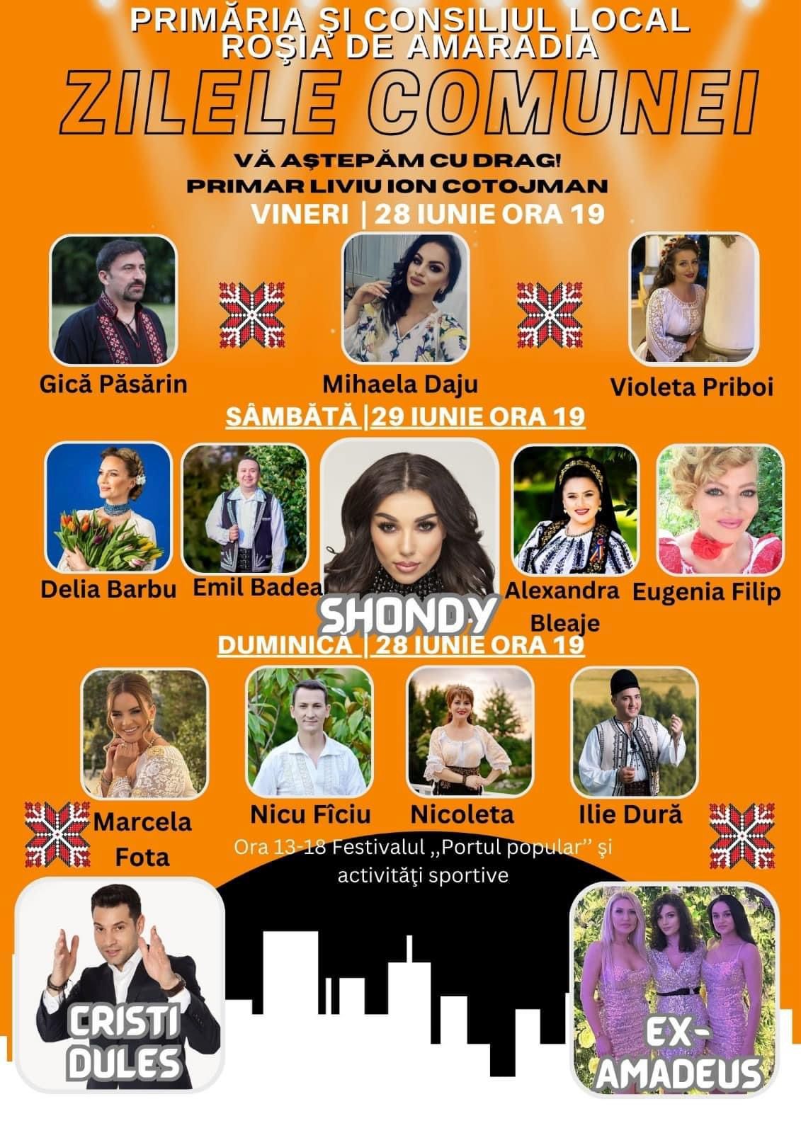 Cristi Dules, Shondy sau fetele de la ex-Amadeus și alții vor face spectacol la Roșia de Amaradia.