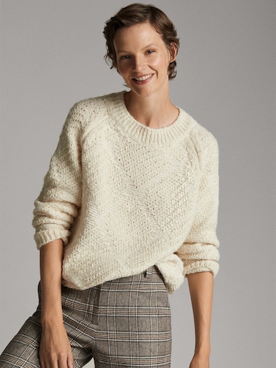 O pereche de jeans albi și niște botine negre împreună cu acest pulover creează o ținută cu un aer lejer și la modă, iar pentru o notă glam adaugă accesorii aurii.