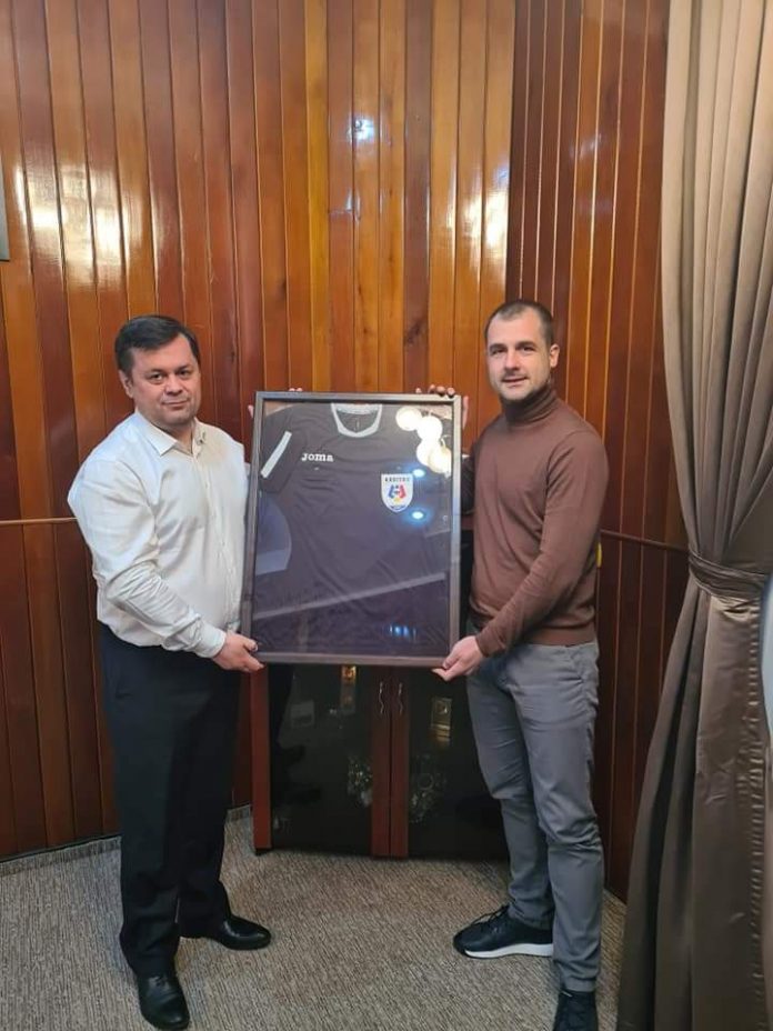 Primarul municipiului Marcel Romanescu a primit astăzi, la sediul UAT-ului, vizita arbitrului Sorin Costreie. Edilul s-a declarat încântat de întâlnirea cu acest gorjean valoros.