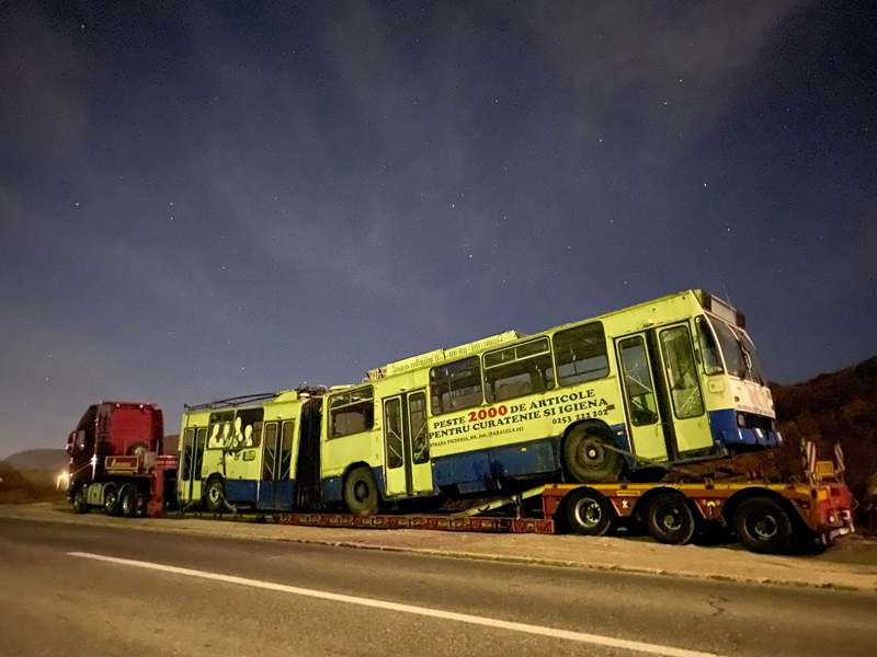 ,,În ultimele luni v-am povestit despre troleibuzul românesc salvat de la casare de o mână de pasionați ai transportului public și am apelat la generozitatea voastră pentru a putea realiza transportul costisitor al acestuia. Revenim cu vești bune! Troleibuzul Rocar 217E este acum un exponat al Muzeului Automobilului Românesc din Câmpulung Muscel. Transportul special nu a fost lipsit de peripeții, iar gradul de dificultate al operațiunii a fost mai ridicat decât anticipasem, însă totul s-a încheiat cu bine. Operațiunile logistice și transportul s-au întins pe două zile: încărcarea a avut loc joi, 26 octombrie, iar descărcarea vineri, 27 octombrie 2023. Fabricat la Uzina Rocar în anul 1994 și intrat în exploatare la 20 iunie 1995, troleibuzul articulat Rocar 217E a circulat în orașul lui Brâncuși timp de 26 de ani, fiind o prezență constantă pe cele două linii de troleibuz ce leagă cartierul 9 Mai de Artego și Bârsești. Troleibuzul a purtat numărul de parc 104 și a avut numărul de înmatriculare Târgu Jiu 0108. A fost retras din circulație în 2021 și scos la vânzare în aprilie 2023, ulterior fiind achiziționat de doi pasionați ai transportului public, în încercarea de a salva o parte importantă a istoriei mobilității din România. Prin această intervenție, numărul troleibuzelor de acest fel salvate ajunge la 6, alte exemplare regăsindu-se în municipiile Timișoara, Iași și Târgu Jiu. (…) Mulțumim Transloc pentru grija purtată troleibuzului și pentru sprijinul logistic! La pregătirea vehicului au pus umărul și câțiva pasionați care și-au dedicat mai multe zile pentru operațiune. În ceea ce privește transportul special al troleibuzului la muzeu, am fost luați prin surprindere de sprijinul și interesul public pe care l-am primit. Mulțumim persoanelor fizice care au donat pentru transport și firmelor care s-au implicat în realizarea acestui transport dificil. Expunerea publică a troleibuzului se realizează în parteneriat cu familia Hagi din Câmpulung, inițiatorii privați ce au adus la viață Muzeul Automobilului Romanesc”, au anunțat reprezentanții Inițiativei pentru Muzeul Transportului Bucureștean.