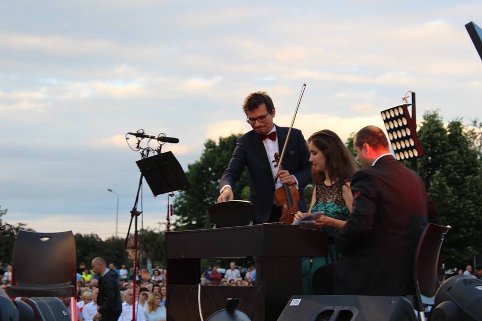 Circa 1000 de oameni au participat, sâmbătă seara, la concertul în aer liber organizat în Parcul Coloanei Infinitului de Alexandru Tomescu în cadrul turneului național „Vive la musique”. Acesta a urcat pe scenă împreună cu vioara Stradivarius cu care a cucerit lumea în ultimii ani, concertul începând după ora 20.00. De la eveniment a lipsit primarul Marcel Romanescu, ceremoniile fiind conduse de viceprimarul Adrian Tudor, care i-a oferit lui Tomescu un tablou cu o fotografie realizată în urmă cu circa două decenii, când artistul cânta la Târgu-Jiu pentru prima dată la un concurs școlar. Alături de artist, pe scenă a urcat Delphine Benhamou, din Franța, care a cântat la harpă, în timp ce coregraful Lari Giorgescu a dansat aproape în permanență lângă aceștia. Concertul a fost răsplătit din plin cu aplauze, gorjenii prezenți aici fiind încântați de ceea ce au avut ocazia să vadă. „E o idee excelentă să aduci cultura aproape de mase și sunt foarte fericită să văd lucrul acesta întâmplându-se măcar o dată pe an la Târgu-Jiu, aici în aer liber. E cu atât mai plăcut să vii la un astfel de concert cu cât avem Coloana pe fundal. Ce poate fi mai frumos?”, a spus una dintre spectatoare.