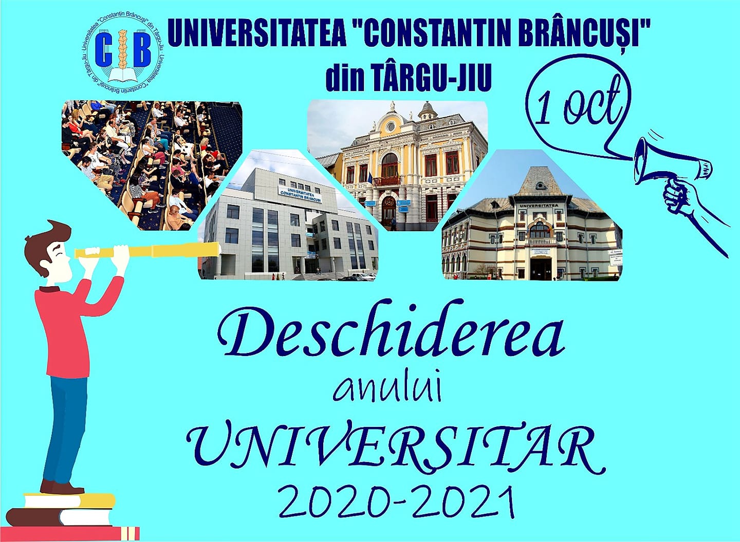 Universitatea ”Constantin Brâncuși” din Târgu-Jiu organizează astăzi, începând cu ora 11:00, în amfiteatrul ,,Auditorium Maximus”, ceremonia de deschidere a anului universitar 2020-2021. La eveniment vor participa președintele Senatului, rectorul, prorectorii, decanii celor 4 facultăți, membrii Senatului, dar și reprezentanții studenților. Din nefericire, condițiile pandemiei nu permit o prezență fizică numeroasă, de aceea, ceremonia va fi transmisă live pe pagina de Facebook a UCB.
