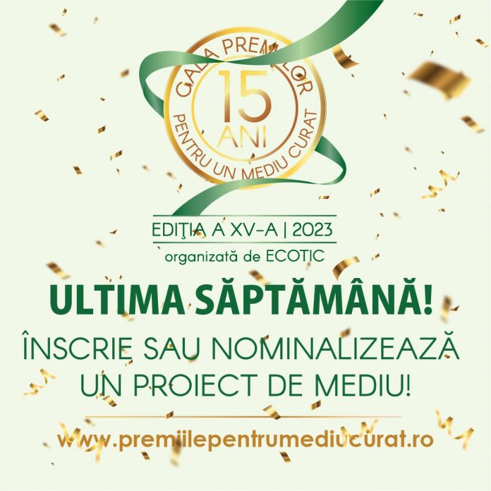 Ecotic, în parteneriat cu Ministerul Mediului, Apelor și Pădurilor, organizează cea de-a XV a ediție a Galei Premiilor pentru un Mediu Curat. Organizațiile care nu și-au înscris încă proiecte cu impact pozitiv asupra mediului înconjurător sunt invitate să completeze formularele online dedicate de pe platforma www.premiilepentrumediucurat.ro, până vineri, 24 noiembrie.