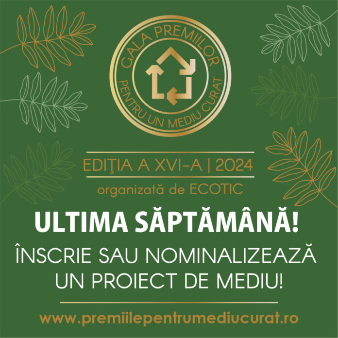 ”Completează formularul de înscriere disponibil pe platforma www.premiilepentrumediucurat.ro până pe 26 noiembrie 2024 și înscrie-ți proiectul într-una dintre categoriile competiției. Concursul este destinat celor mai inovative, de impact și durabile proiecte de mediu dezvoltate în acest an. Sunt încurajate toate proiectele care au fost implementate în 2024 sau care sunt încă în derulare și care au un impact semnificativ asupra mediului. Exemple de proiecte care pot fi înscrise: •Eco-educație pentru copii și publicul larg; •Reducerea risipei alimentare și conservarea resurselor naturale; •Colectarea separată a deșeurilor și promovarea reutilizării și reciclării; •Eficiență energetică; •Acțiuni de ecologizare și împădurire; •Proiecte de economie circulară și multe altele. Categorii de premii: – Proiecte de mediu – 3 câștigători – această categorie este destinată proiectelor de mediu realizate de companii, instituții publice, autorități locale, ONG-uri (instituțiile de învățământ au o categorie specială); – Premiul pentru jurnaliști – oferă recunoaștere jurnaliștilor celor care aduc în atenția publicului proiecte ecologice și bune practici de protecția mediului și de economisire a resurselor; – Premiul pentru instituții de învățământ – se adresează proiectelor educaționale realizate în grădinițe, școli și universități. Publicul poate nominaliza proiecte pe platforma www.premiilepentrumediucurat.ro, iar cei care sunt implementatorii proiectelor propuse vor fi contactați de către organizatori pentru a se înscrie”, au anunțat reprezentanții ECOTIC.