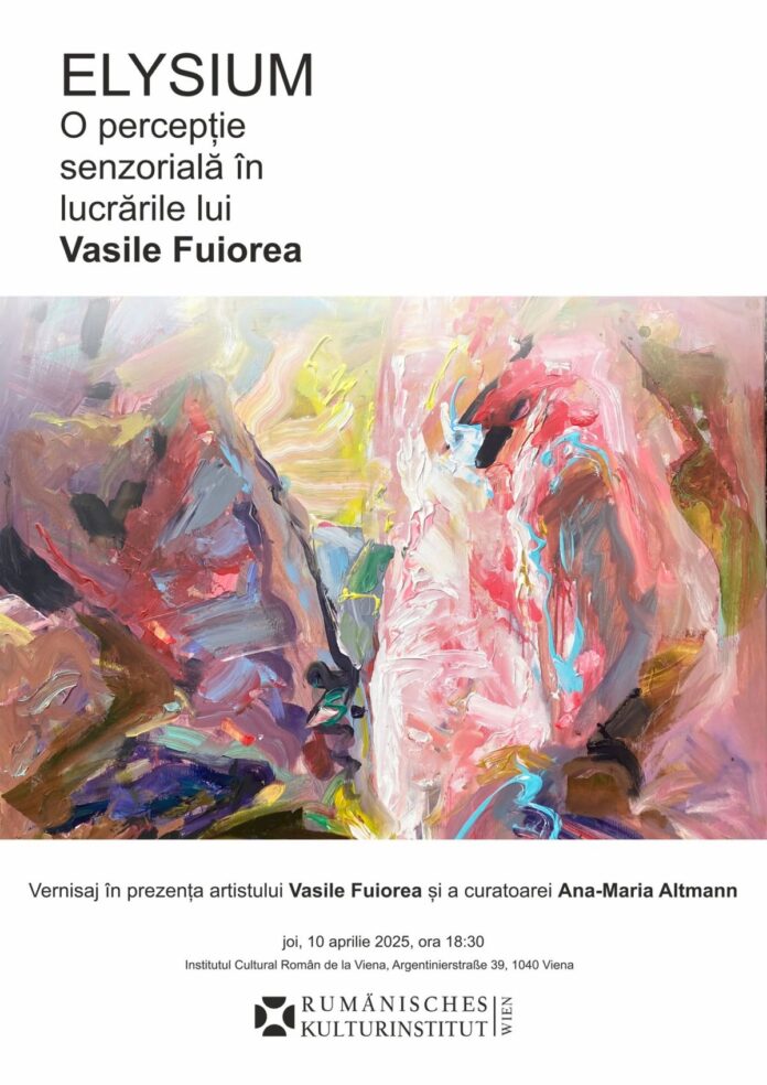 Institutul Cultural Român de la Viena organizează expoziția de pictură „ELYSIUM – O percepție senzorială în lucrările lui Vasile Fuiorea”. Vernisajul va avea loc în data de 10 aprilie, ora 18:30, la Galeria Institutului Cultural Român de la Viena, în prezența artistului vizual Vasile Fuiorea și a curatorului, istoric de artă Ana Maria Altmann.