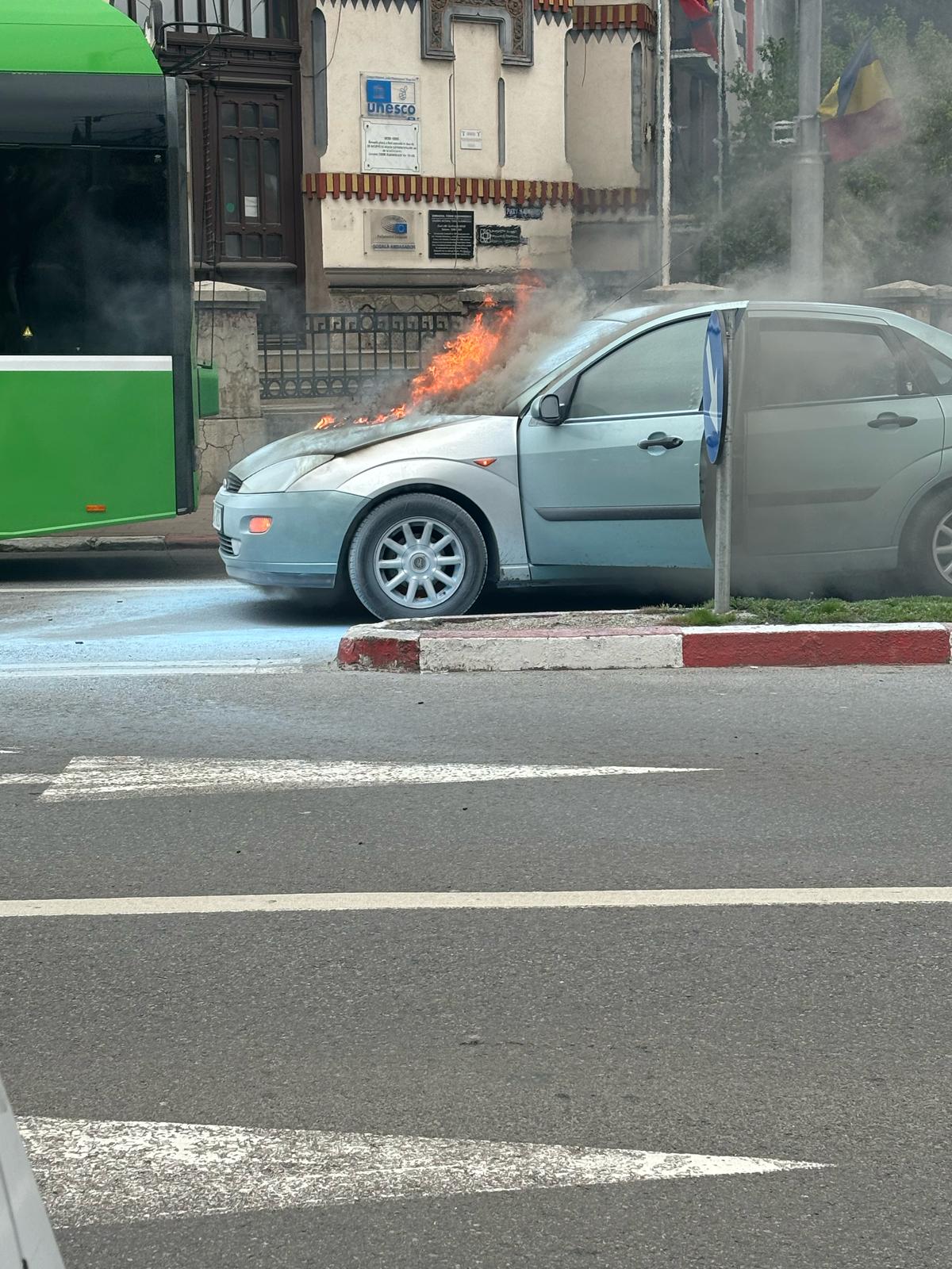 Un autoturism a luat foc în centrul orașului! Foto, video