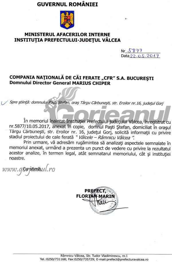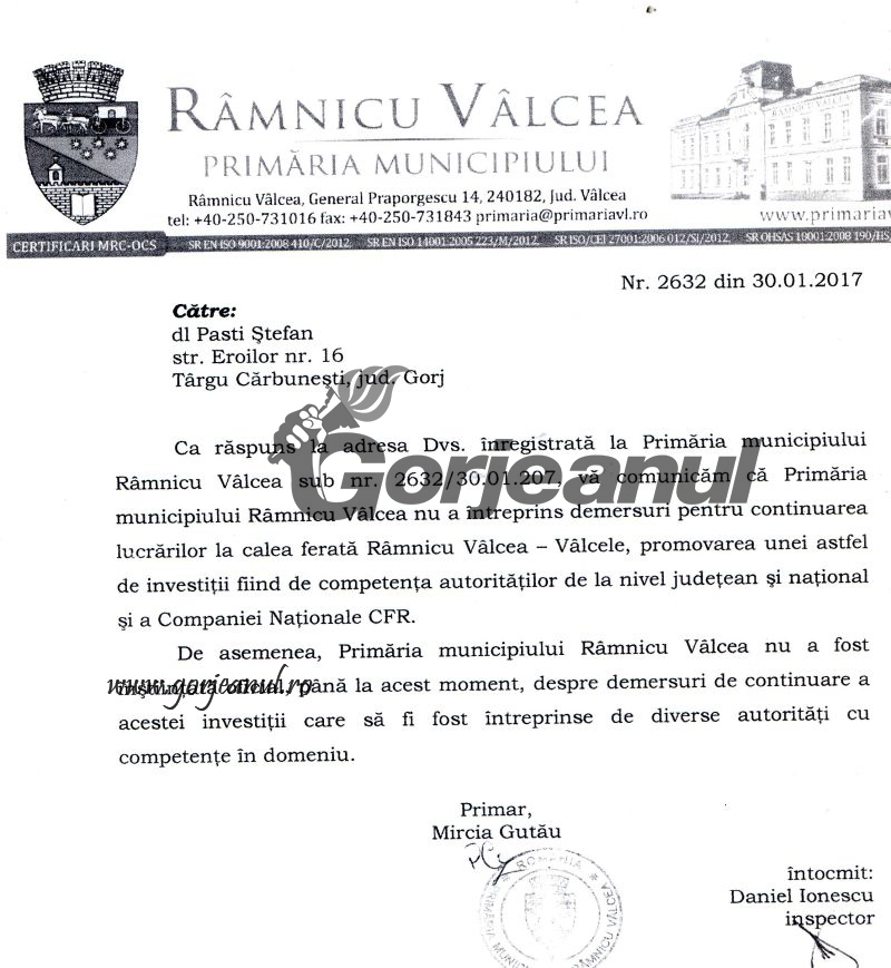 Răspunsul primit a fost unul prea puțin încurajator, solicitantul fiind informat, în scris, că linia CFR Cărbunești-Albeni este neinoperabilă, dar și că licitația privind “închirierea acestei secții” va avea loc în martie 2017.