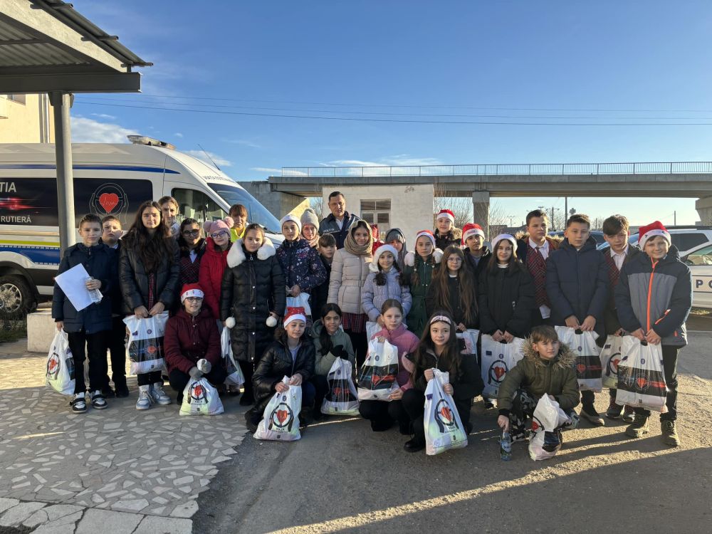 Donatela și agentul șef principal Hortopan Liviu, și au fodt conduși pe holul de la intrarea în instituție, unde erau așteptați de alți polițiști în uniformă sau civil, care au primit cu plăcere pe micuții colindători. Aceștia, cu vocile încărcate de emoție, au creat o atmosfera magică specifică acestor zile premergătoare sărbătorilor de iarnă, aducând o mare bucurie în sufletele celor prezenți. La final, colindătorii au fost chemați în curtea instituției, unde doamna inspector principal Șerban Donatela și agentul șef principal Hortopan Liviu le-au dăruit câte o pungă cu dulciuri și fructe, după care au făcut o fotografie de grup spre amintire.