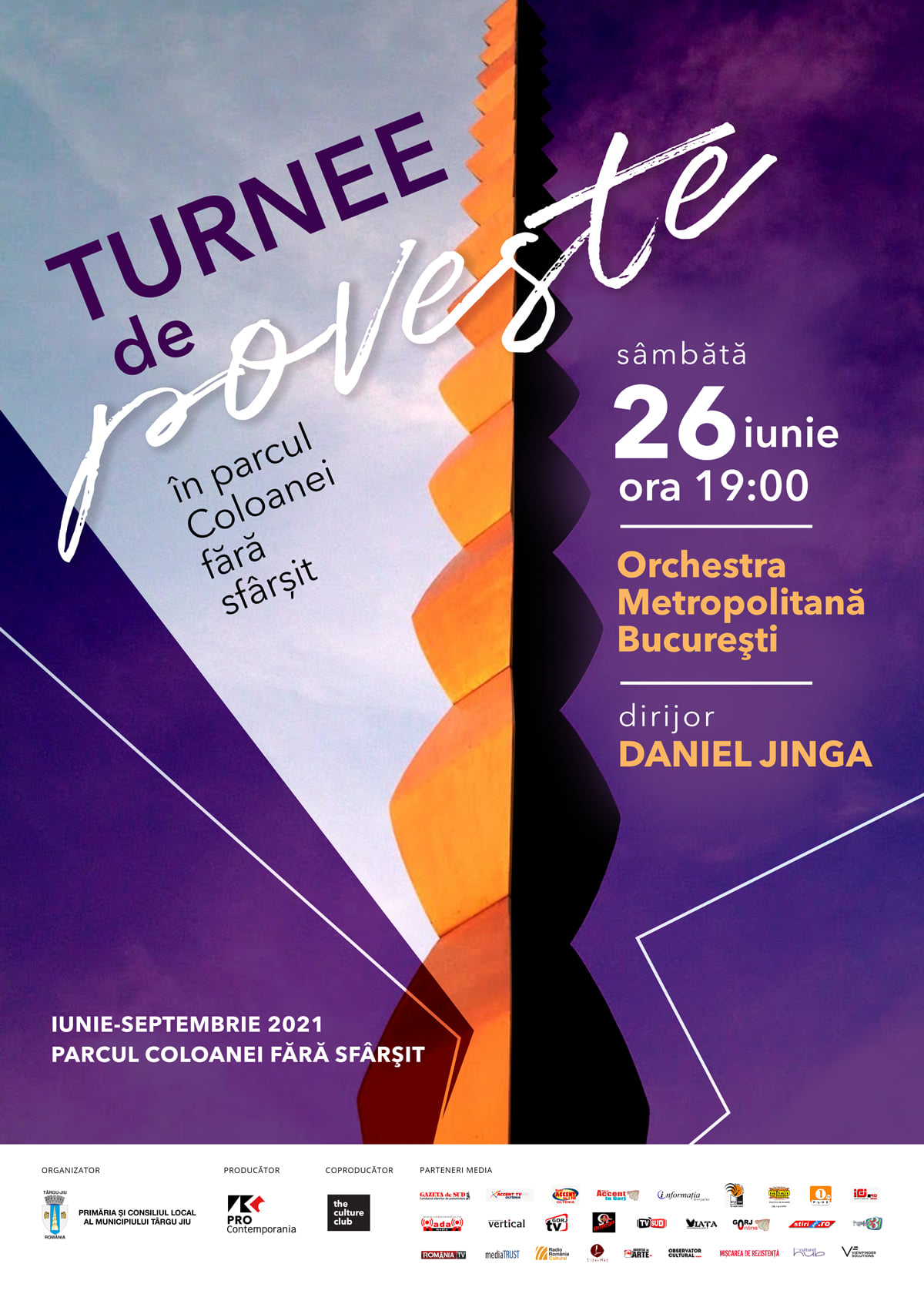 Orchestra Metropolitană București vine la Târgu Jiu, în cadrul evenimentului ”Turnee de poveste”, organizat de Primăria Municipiului Târgu Jiu, Astfel, următorul concert este programat pentru sâmbătă, 26 iunie 2021, ora 19:00, în Parcul Coloanei Fără Sfârșit.