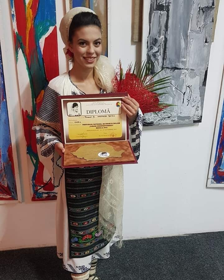 Andrada Betej, cursantă a Școlii Populare de Artă Târgu-Jiu, coordonată de prof. Nicoleta Argint, a obținut recent Premiul III în cadrul Festivalului de Doine și Balade „Ileana Constantinescu”. Casa de Cultură „Ileana Constantinescu”, din orașul Drăgănești-Olt, a organizat anul acesta cea de-a 44-a ediție a acestui concurs în ziua de 27 septembrie 2019.