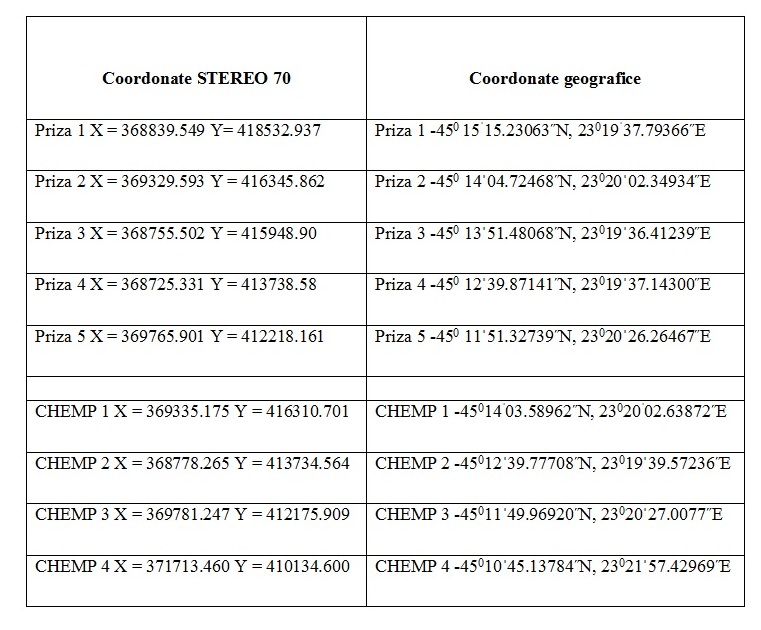 Amplasamentul proiectului este identificat prin coordonatele topografice și STEREO70 din Tabelă.
