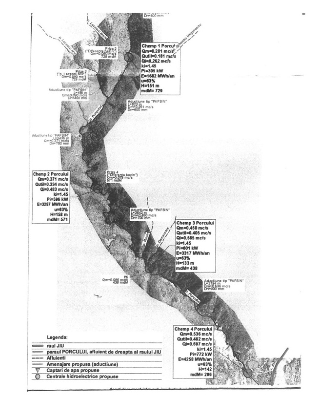 Județul Gorj, prin regiunile sale subalpine, este prin excelență deținătorul bazinelor hidrografice cu cel mai mare potențial hidroenergetic, a cărui valorificare se înscrie fidel în programele naționale de reducere a emisiilor de gaze cu efect de seră (GES) impuse prin Protocoalele semnate, elaborat de S.C. ROBSON HOLDING ENERGY S.R.L. București și S.C. VISIS BEST PROIECT, sub conducerea d-lui director g-l PLĂSTOI VASILE PAUL, proiectul intitulat AMENAJARE HIDROENERGETICĂ PE PÂRÂUL PORCULUI AFLUENT DE DREAPTA AL RÂULUI JIU, BUMBEȘTI-JIU, JUD. GORJ, inovează tehnologic și descoperă surse primare de energie nefolosite, având CERTIFICATUL DE URBANISM NR.32 DIN 21.03.2011, emis de C.I. Gorj, proiectul a fost depus în două exemplare la Ag. P.M. Gorj unde, după examinări, a fost elaborată Decizia nr. 3254/04.05.2011, pentru etapa de evaluare inițială.
