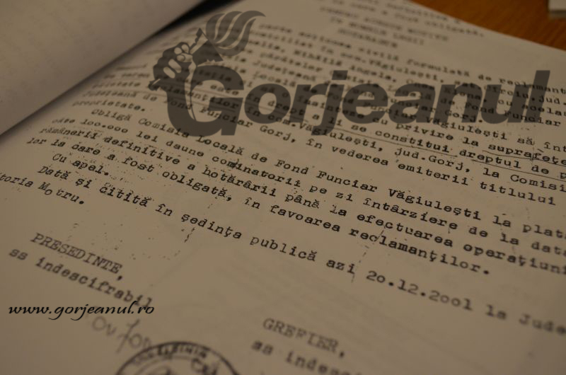 Acest lucru, transmis de prefect Primăriei Văgiulești, nu s-a întâmplat nici măcar acum la un an și două luni de la adresa prefectului Florescu. Mai mult, prin decizia civilă nr. 1955 din 29 noiembrie 2017 a Tribunalului Gorj se constată nulitatea absolută a titlului de proprietate emis pe terenul de 1.2 hectare revendicat de Petre Cârligeru și dispune emiterea unui nou titlu de proprietate pe aceeași suprafață conform sentinței civile din 1997.