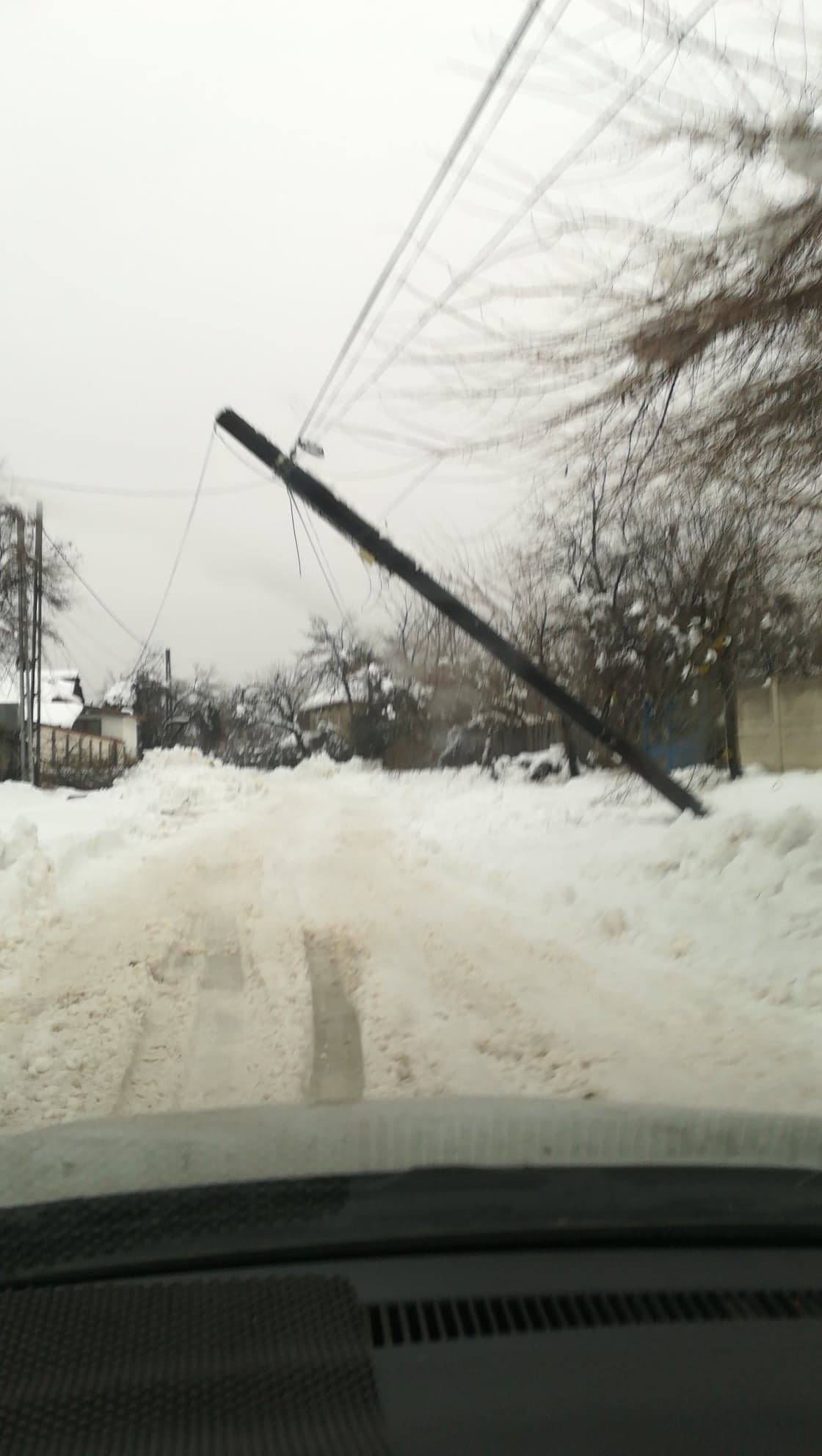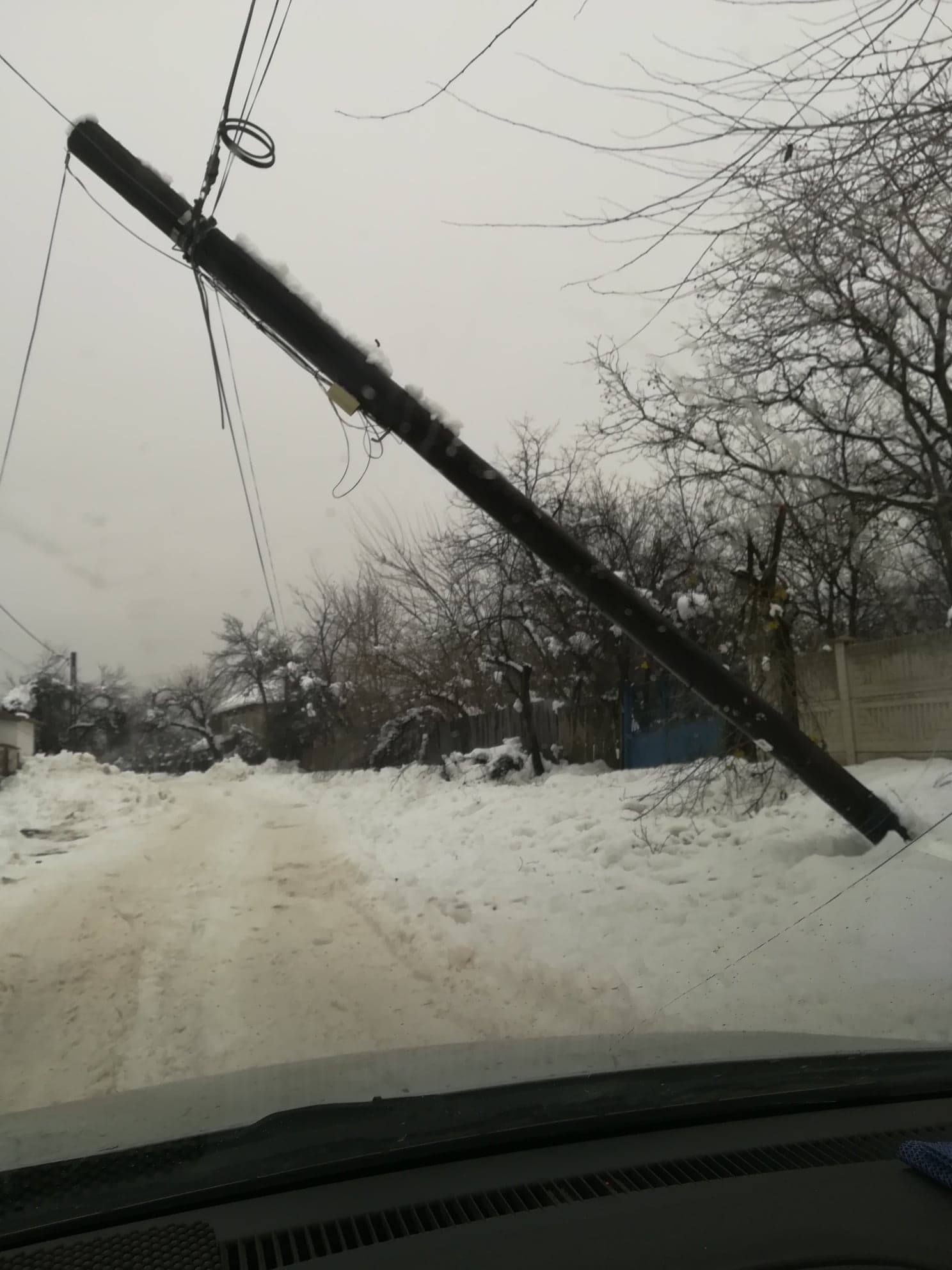 Un stâlp ancorat încă în cabluri, situat la nici 50 de metri de școala din Samarinești, stă aplecat periculos spre stradă, de la finalul săptămânii trecute de când s-au pus ninsorile. Nici măcar astăzi autoritățile locale din Samarinești nu s-au interesat de soarta stâlpului, deși știu că prin zonă trec frecvent, cetățeni, mașini, iar de miercuri și copii.