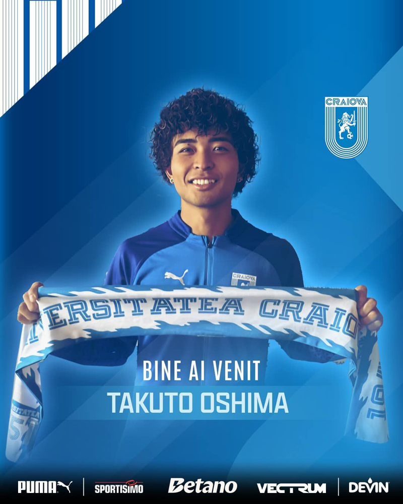 A treia mutare a verii este prezentată într-un mod emfatic de Universitatea Craiova. Doljenii s-au înțeles cu un mijlocaș central, Takuto Oshima, primul japonez din istoria clubului. A fost remarcat în campionatul Poloniei de antrenorul Constantin Gâlcă, actualul manager al Ştiinței. În vârstă de 26 de ani, el a venit liber de contract de la Cracovia. Poate juca oriunde în axul central de la mijlocul terenului. În Europa mai are experiențe în fotbalul slovac, la Zupcany. În ultimul sezon a reușit un gol și două pase decisive în 31 de partide. Niponul este cotat la 550 de mii de euro de transfermarkt. ,,Suntem entuziasmați să anunțăm cel de-al 3-lea transfer important al Universității Craiova pentru acest sezon! La solicitarea managerului general, Constantin Gâlcă, care îl cunoaște bine și are mare încredere în el, Universitatea Craiova l-a transferat pe Takuto Oshima. Takuto Oshima este un mijlocaș defensiv de 26 de ani, foarte apreciat pentru atitudinea sa extraordinara, având următoarele caracteristici:
