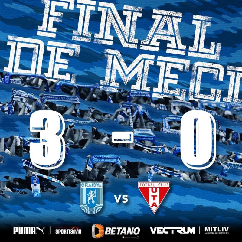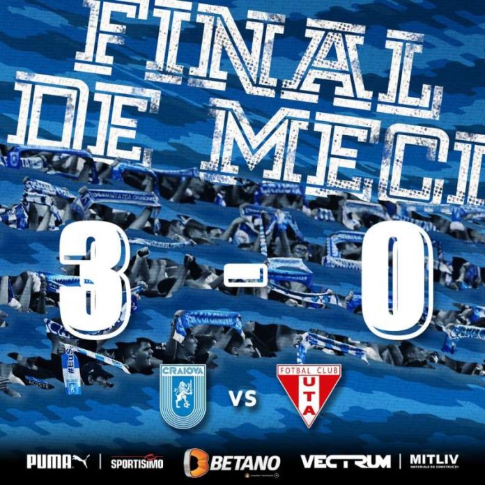 Universitatea Craiova a urcat provizoriu pe primul loc în Superliga de fotbal, după ce a învins-o pe UTA Arad cu scorul de 3-0 (1-0), vineri seara, pe teren propriu, într-un meci din etapa a 6-a.