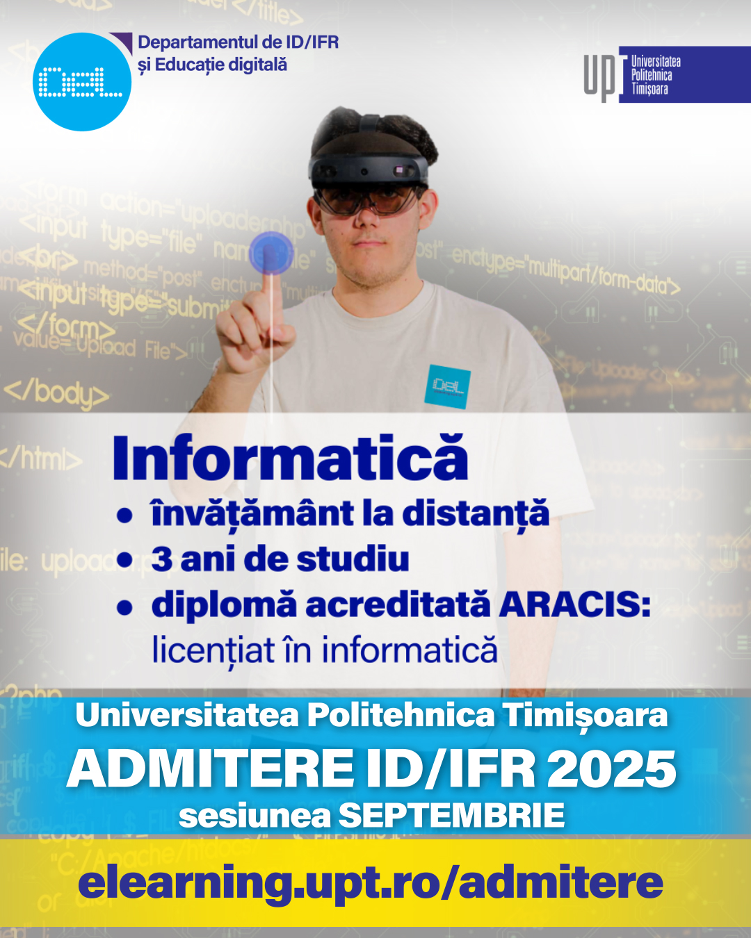 - Website Admitere ID/IFR 2025 – sesiunea septembrie: https://elearning.upt.ro/admitere/