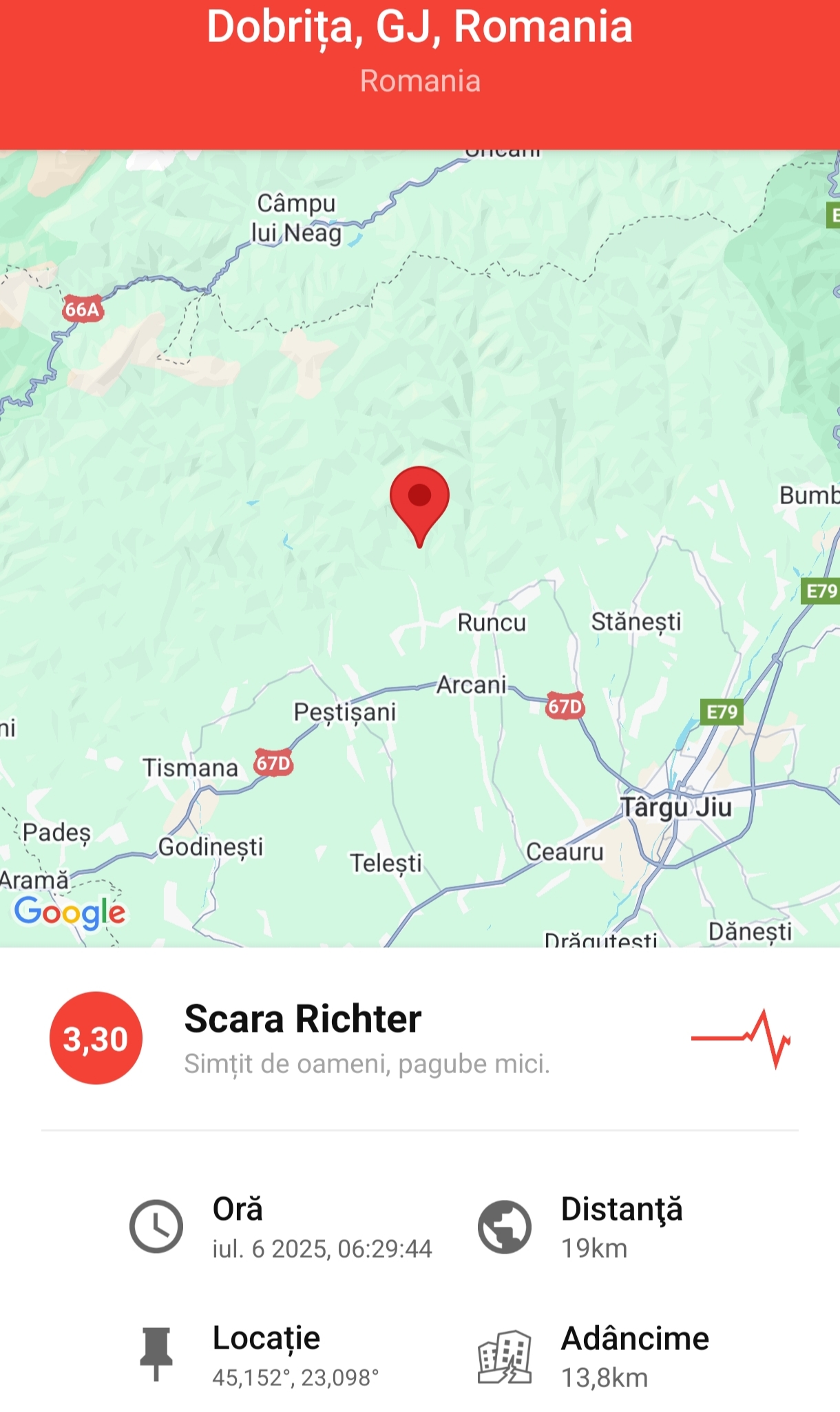 UPDATE: Cutremurul din Gorj, revizuit la 3,3