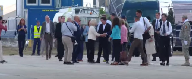 Din delegaţia prezidenţială fac parte ministrul Afacerilor Externe, Oana Ţoiu, ministrul Apărării Naţionale, Ionuţ Moşteanu, şefa Reprezentanţei Comisiei Europene în România, Ramona Chiriac, precum şi consilierii prezidenţiali Luminiţa Odobescu şi Radu Burnete.
