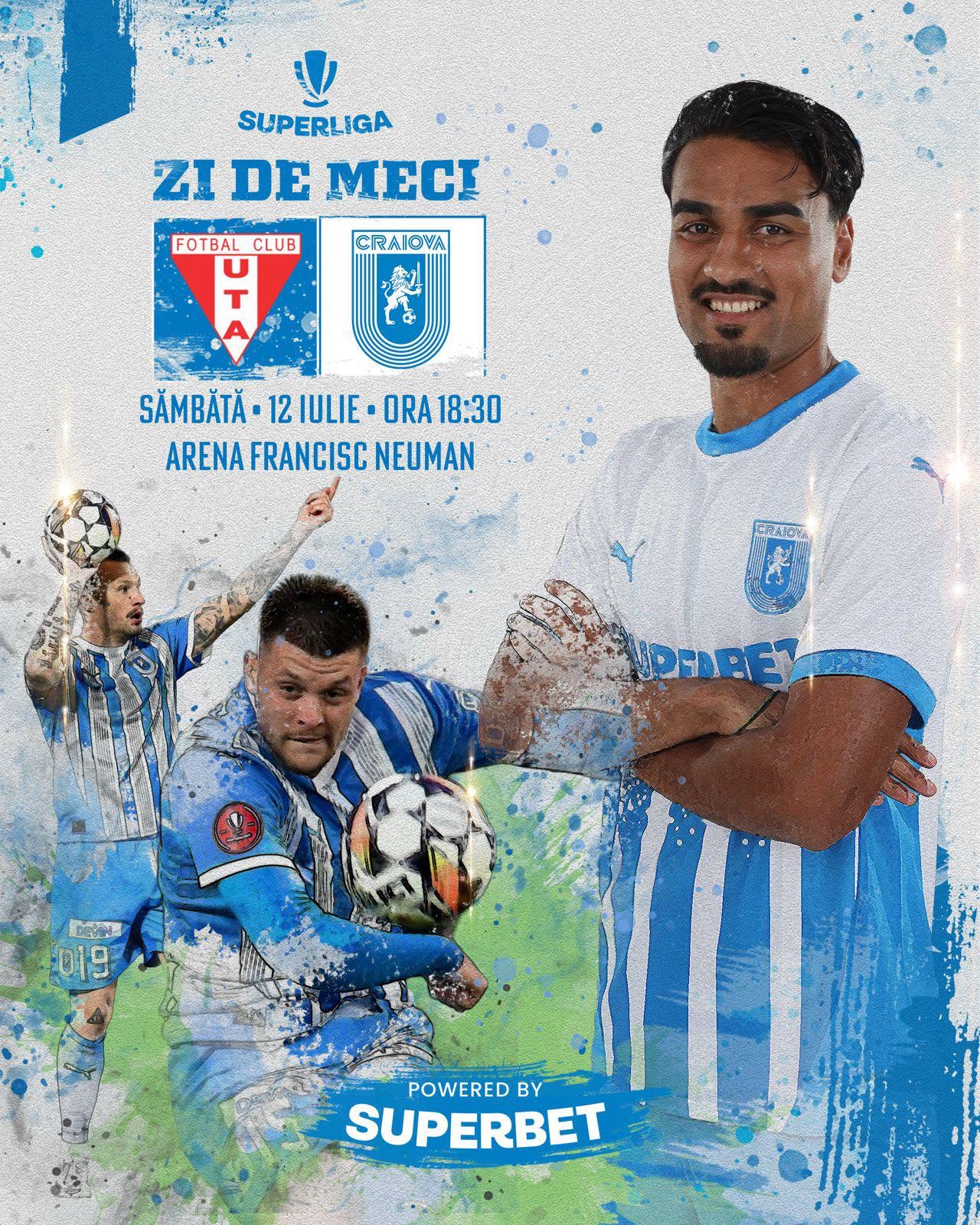 UTA Arad – Universitatea Craiova, sâmbătă, 12 iulie, ora 18:30.