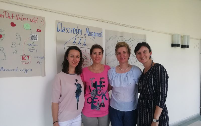 Am avut plăcerea în această vară să fim selectate la un curs de perfecționare în străinătate organizat de Goethe Institut din București și de cel din Bulgaria. Experiența cunoașterii a debutat luni, 26 august în Varna și s-a finalizat vineri, 30 august 2019, iar promotorii acestui curs inovativ au fost pe măsura așteptărilor: Ana Viscrean, Lyubova Mavrodieva, Rossi Vassileva, Paulina Stoyanova, Ursula Schneider –Szutta, Adriana Svraka. Din cursul desfășurat de Frau Ursula Schneider- Szutta am învățat cum să reducem sau cum să evităm evoluția conflictelor, modalități de combatere verbală și nonverbală, dar și cum să ne îmbunătățim conduita și stima de sine. ,,Așadar, acest curs a avut un impact deosebit asupra noastră, iar din punctul meu de vedere, toți profesorii de germană, și nu numai, ar avea nevoie de acest curs susținut de Frau Ursula Schneider –Szutta, care ne-a impresionat prin profesionalismul său și prin atitudinea jovială.”(Pânișoară Elena Ștefania- Școala Gimnazială ,,Constantin Săvoiu”).Despre cursul Anei Viscrean centrat pe managementul clasei de elevi putem spune cu certitudine că ne-a încărcat pozitiv, deoarece aceasta ne-a demonstrat prin exemple ludice și eficiente cum metodele alternative de învățare sunt în beneficiul elevilor noștri. ,,Voi aplica și la clasele mele o parte din metodele descoperite, iar cea care m-a fascinat a fost das Gordische Knoten- Spiel- Jocul Nodul Gordian.”(Ștefănoiu Monica, Școala Gimnazială ,,Alexandru Ștefulescu”)