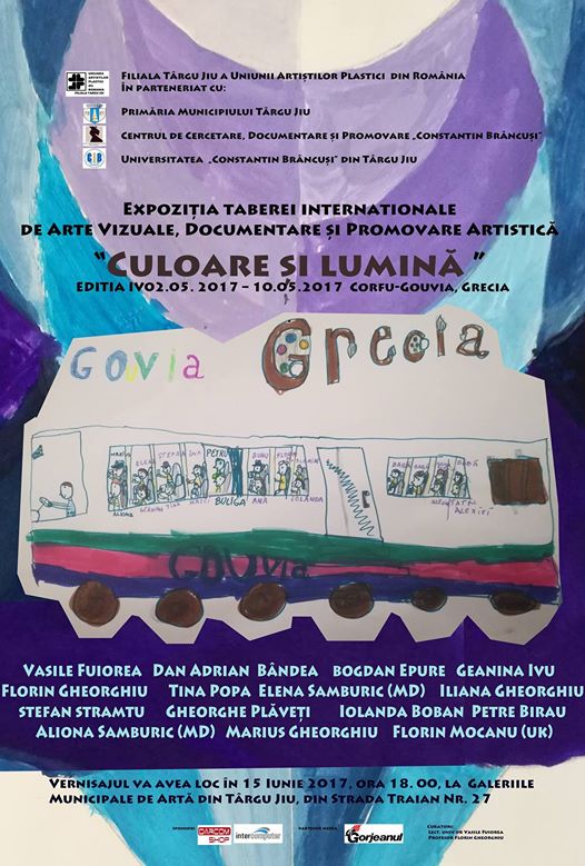 Filiala Târgu Jiu a Uniunii Artiștilor Plastici din România în parteneriat cu Primăria Municipiului Târgu Jiu , Centrul de Cercetare, Documentare și Promovare „Constantin Brâncuși” și Universitatea „Constantin Brâncuși” din Târgu Jiu, organizează Joi 15 Iunie, 2017 , ora 18. 00., la Galeriile Municipale de Artă din Târgu Jiu, vernisajul expoziției Taberei Internaționale de Arte Vizuale „Culoare și Lumină”, ce a avut loc în Grecia/ Corfu-Gouvia în perioada 02-10 Mai, 2017. Curator : Florin Gheorghiu, Vasile Fuiorea. Expoziția este deschisă publicului în perioada 15 Iunie – 28 Iunie 2017