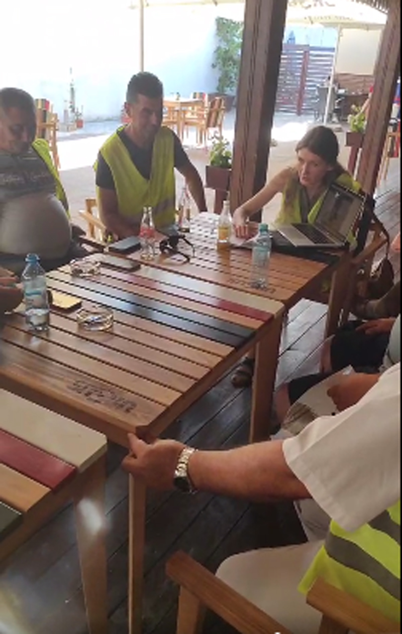 Liderul Nicu Bunoaica și colegii săi, angajați ai CEO, s-au întâlnit cu reprezentanții Asociației franceze Vestele Galbene, luni după-amiază, la o terasă din Târgu-Jiu.