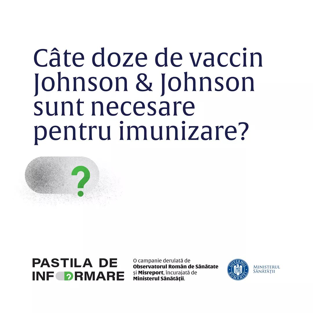 „În România ne așteptăm ca vaccinarea cu Johnson & Johnson să înceapă la jumătatea lunii aprilie. Vaccinul dezvoltat de Janssen, divizia farmaceutică a companiei Johnson & Johnson, se administrează într-o singură doză. Datele preliminare din studiul clinic de fază 1 au sugerat că o singură doză poate fi suficientă pentru a produce un răspuns imun, iar rezultatele studiului clinic de fază 3, care a stat la baza aprobării sale, au confirmat acest lucru. Vaccinul a redus semnificativ cazurile de COVID-19 în rândul persoanelor imunizate, astfel: