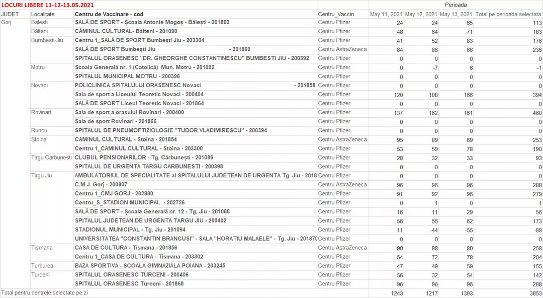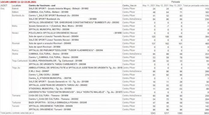 Vezi locurile libere în centrele de vaccinare din Gorj!